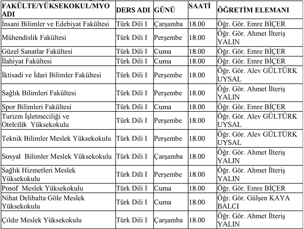 REKTÖRLÜK ORTAK DERSLER BÖLÜMÜ